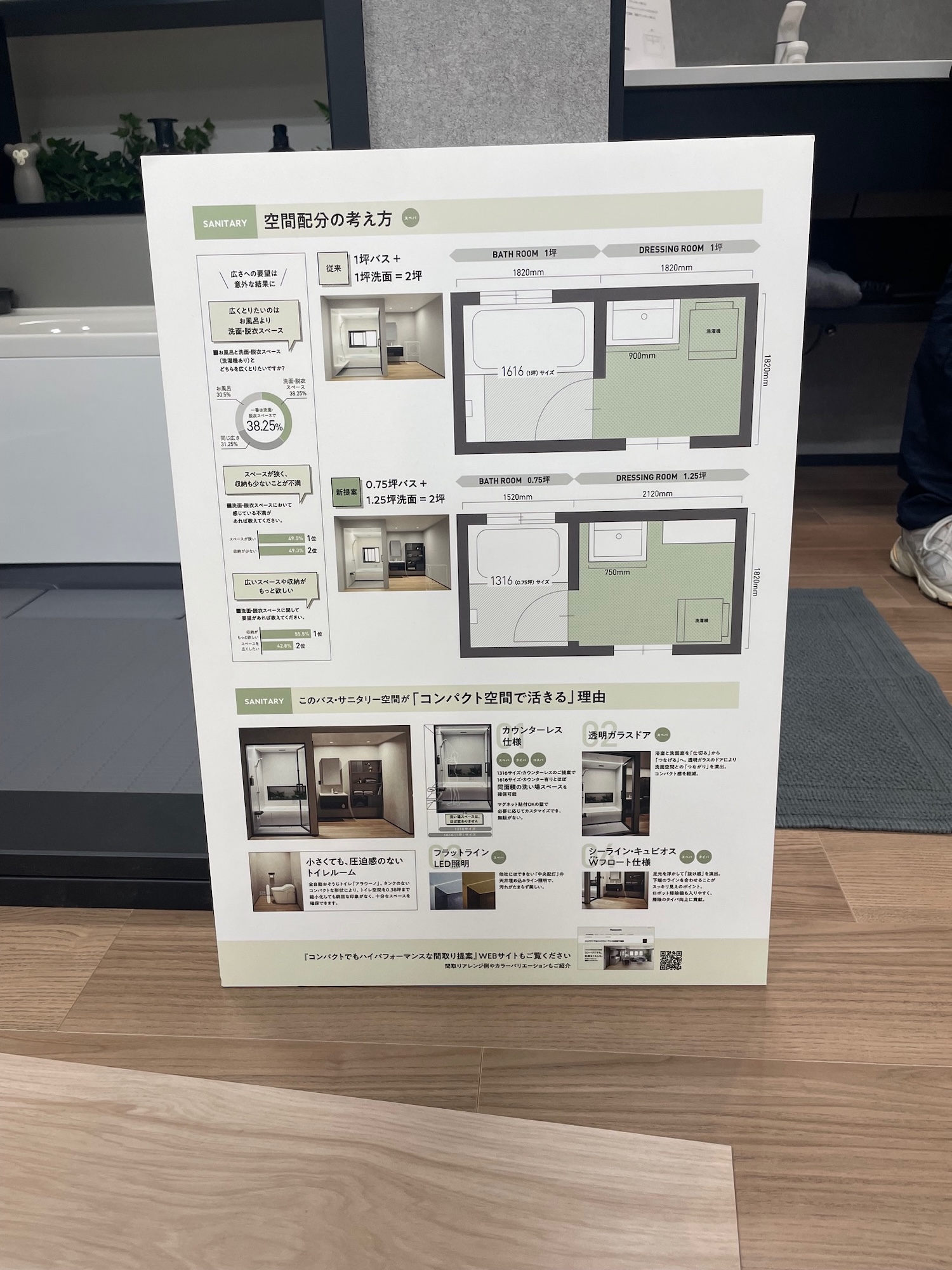 テイスト別でいくつもの空間展示があり、設備機器だけでなく、レイアウトやカラーコーディネート、空間デザインについても