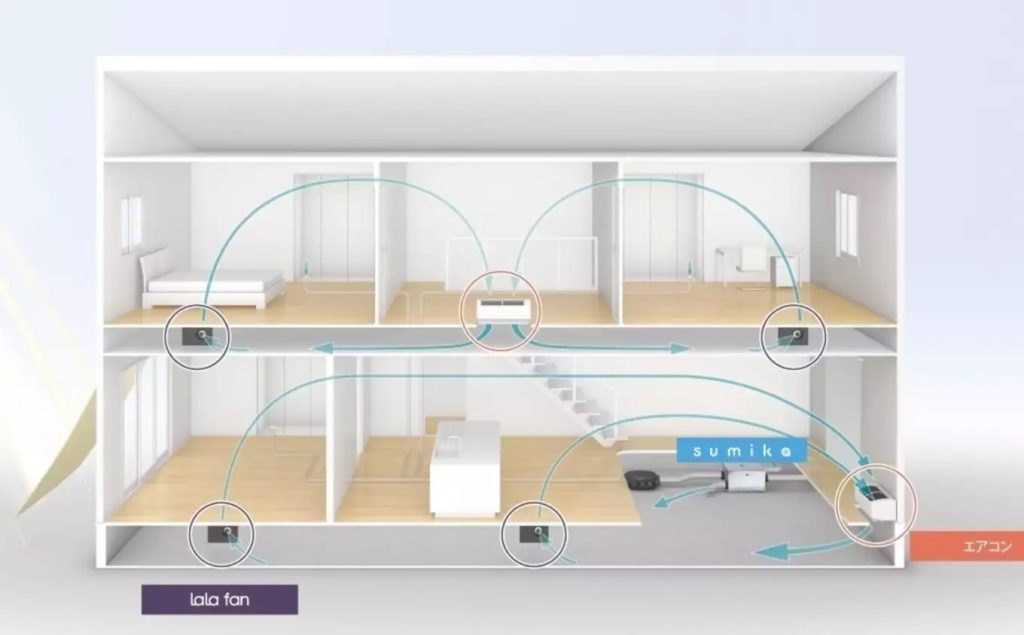 『エアコン』+『24時間全熱交換型換気システム「sumika」』+『床ファン「lala fan」』