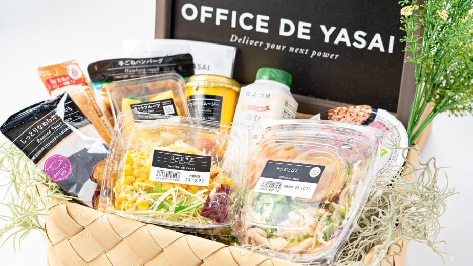 「オフィスでやさい」は、サラダやお惣菜などを100円から購入できる、