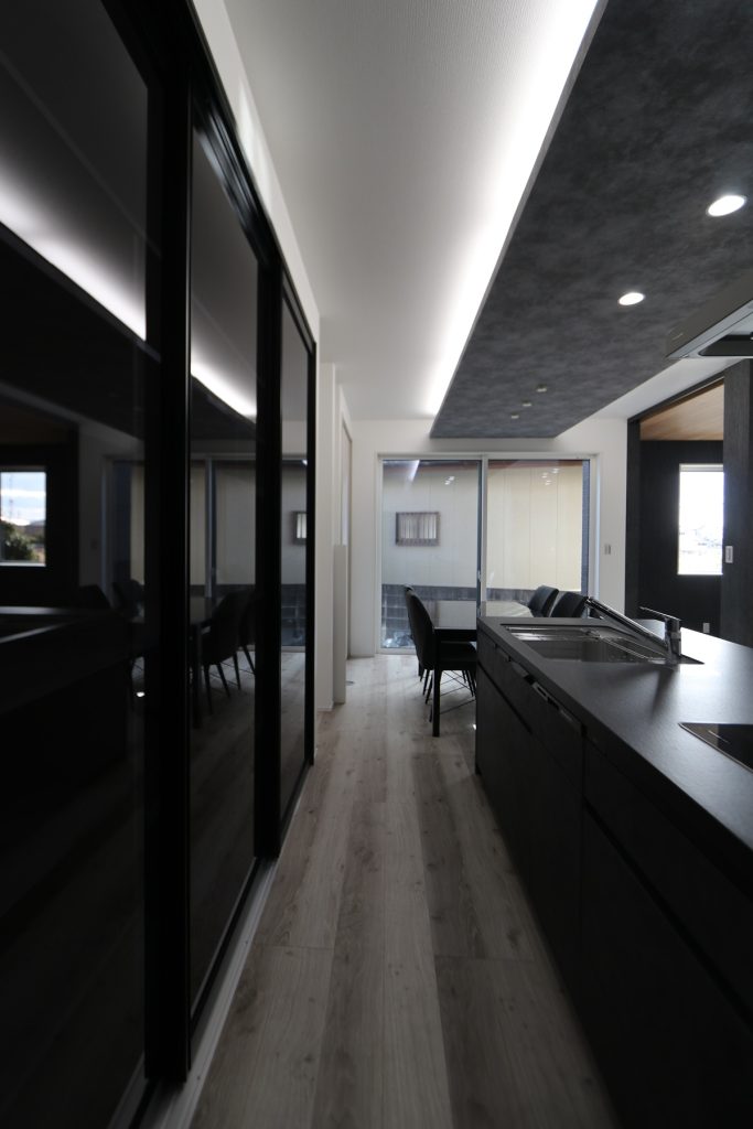 外壁には、ブラックタイル調のサイディングを使用し、高級感のあるカッコいい仕上がりになりました。