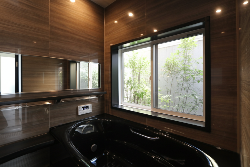 「植栽を眺めながらお風呂に入りたい」というご要望に合わせて窓を設け、