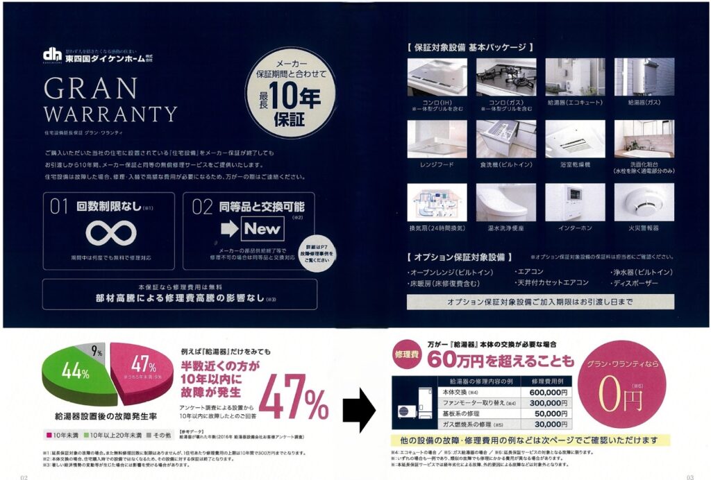 東四国ダイケンホームの設備保証なら、お引き渡しから10年間、