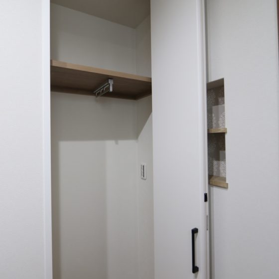 LDKの物入は掃除用具やリビング収納として、2階の納戸(2.6帖)は季節の物や趣味アイテムなどを整理しておくスペースとして大活躍。