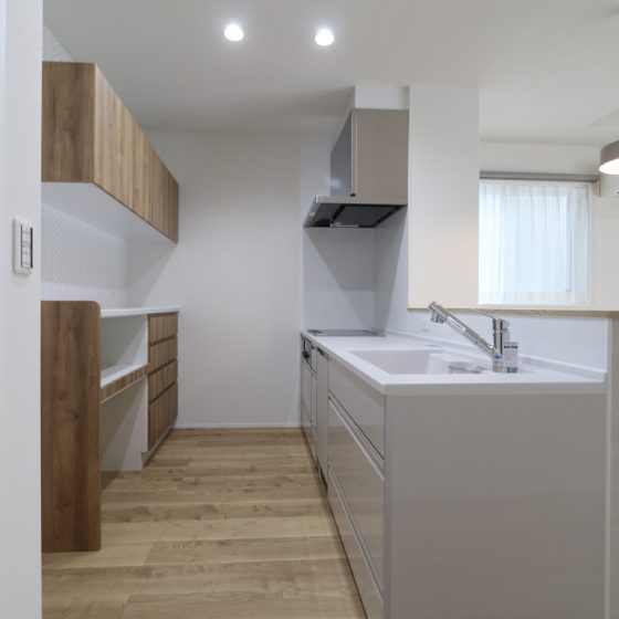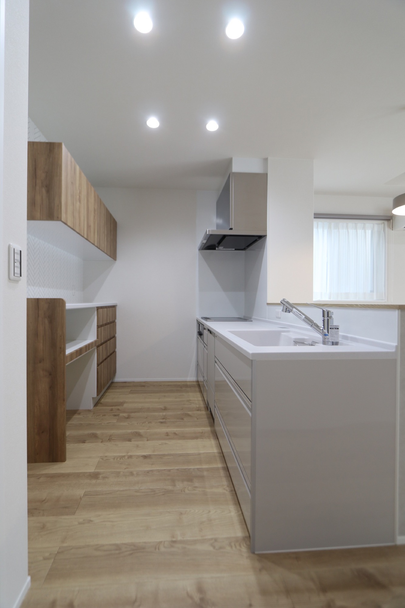 キッチン内もLDK全体の雰囲気に合わせて白を基調としてデザインし、一体感のある空間に。